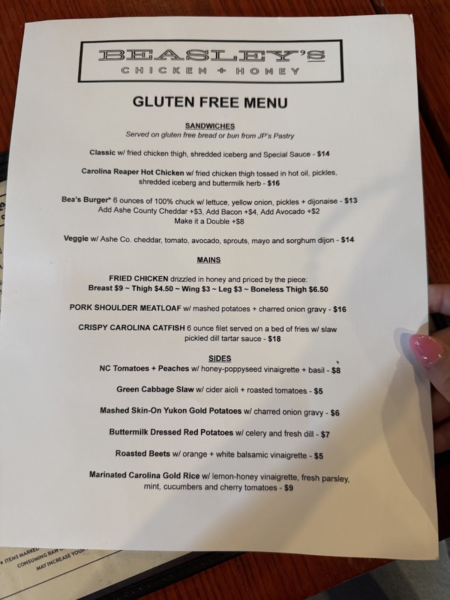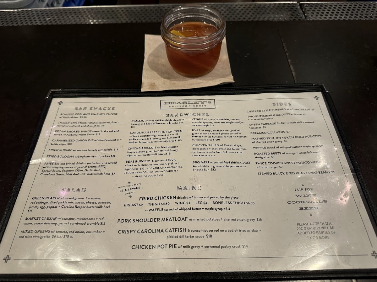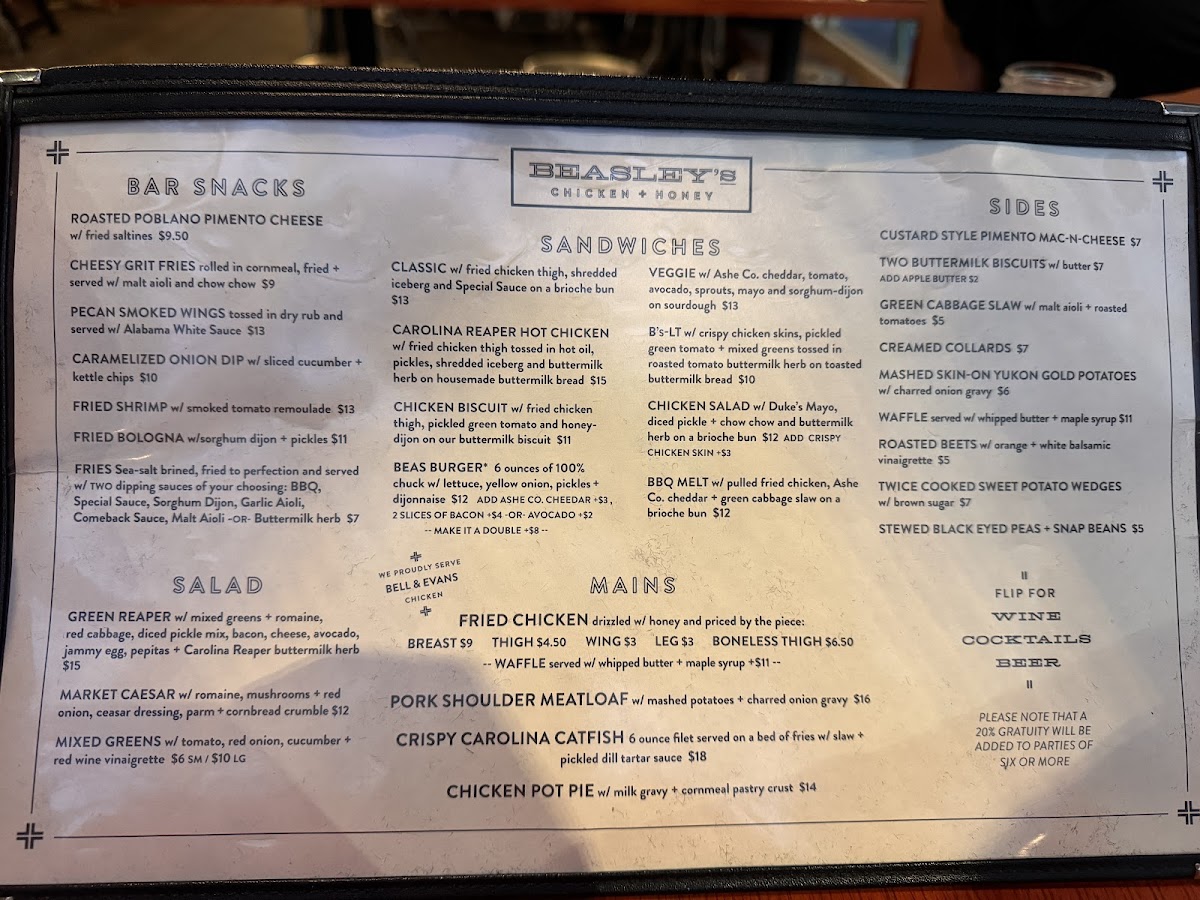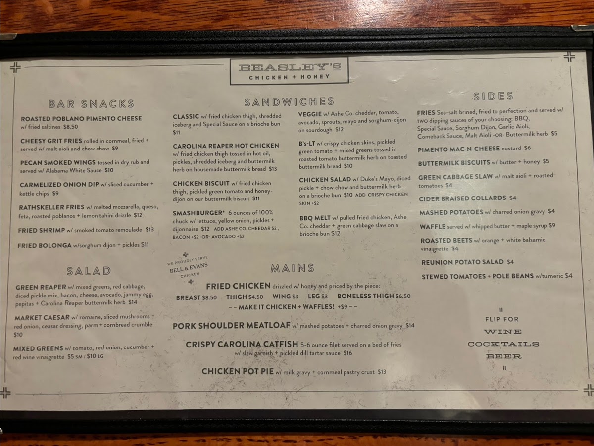 Fried boneless thigh w/ pickled green tomato and honey-dijon on our buttermilk biscuit. Allergies: Gluten, Soy, Egg, Nightshades
